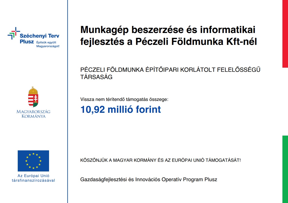 A kedvezményezett neve: PÉCZELI FÖLDMUNKA Építőipari Korlátolt Felelősségű